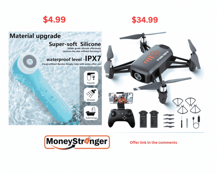 Drone with Camera for Kids and Adults $34.99 ($79.99), Vibrating and Rotating Face Scrubber $4.99 ($9.99)