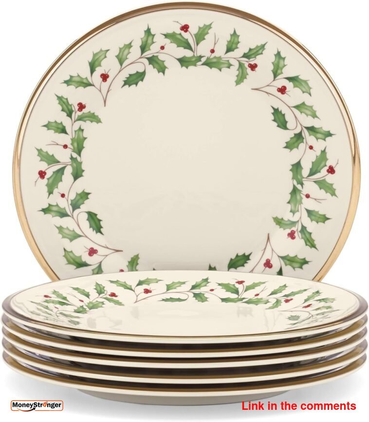 Lenox Holiday 6-Piece Salad Plates Dinnerware Set, Service For 6, Porcelain, Dishwasher Safe, Round Plates Set, Ivory Red & Green, is on sale For $29.95 (Reg. $99.95) at Amazon.com.