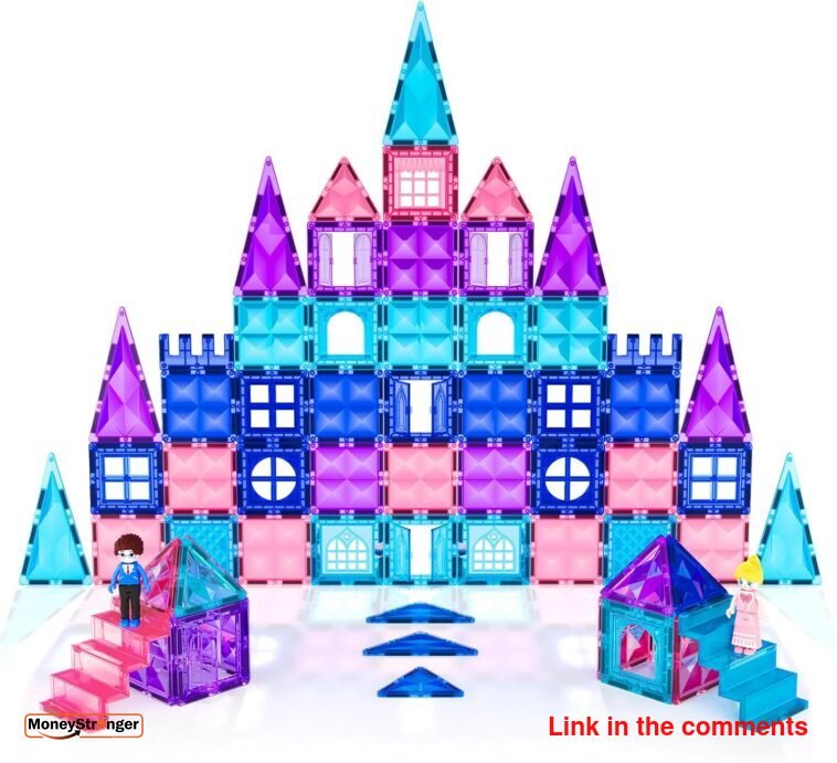 Magnetic Tiles 102pcs with 2 Stairs 2 Dolls Princess Castle Building Girls Toys Age 4-5 6-8 Magnetic Blocks, is on sale For $19.99 (Reg. $49.99) at Amazon.com.