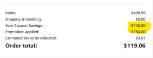 Apply Code: TC7X8I34 (Clip $140.00 Off Coupon) at Checkout, the price will go down to $109.99