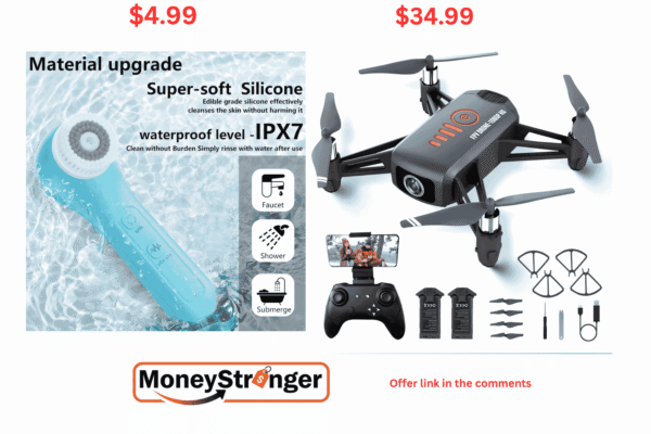in Amazon Drone with Camera for Kids and Adults $34.99 ($79.99), Vibrating and Rotating Face Scrubber $4.99 ($9.99)