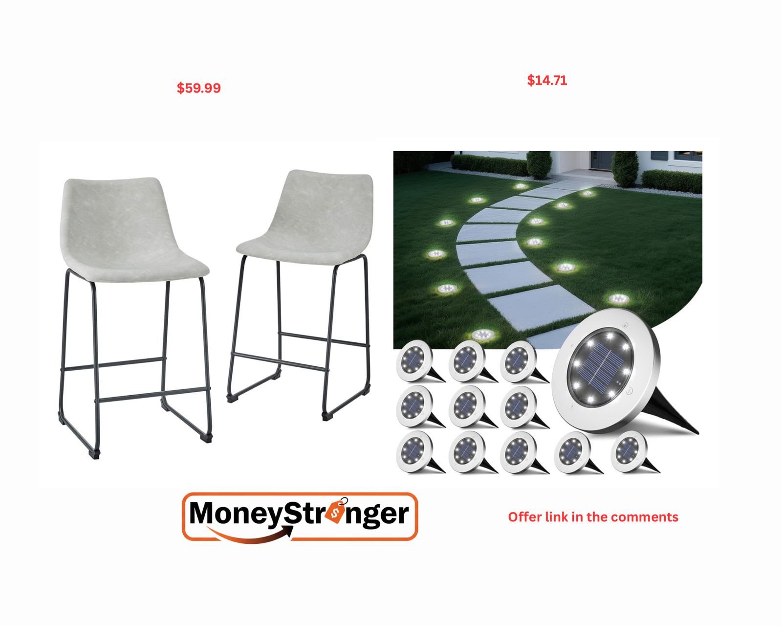 in Amazon 2pk Douglas Urban Industrial Faux Leather Chairs $59.99 ($77), 12 Pack Solar Garden Lights Outdoor Waterproof $14.7 ($38)