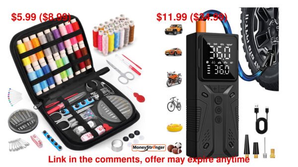in Amazon Coquimbo Sewing Kit Stocking Stuffers $5.99 ($8.99), AIRSURE Tire Inflator Portable Air Compressor $11.99 ($34.99) #ad