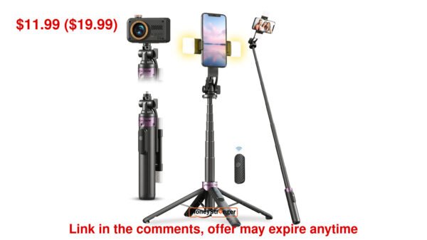 in Amazon ACKIMA 53” Selfie Stick Tripod with Light, Enhanced 4-Leg Cell Phone Stand Camera Tripod with Rechargeable Wireless Remote & 2 Fill Li… #ad