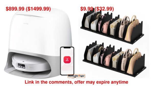 in Amazon roborock Qrevo CurvX Robot Vacuum and Mop $899.99 ($1,499.99), Ronlap Purse Storage Organizer for Closet $9.99 ($32.99) #ad