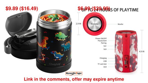 in Amazon ChugJug 15 oz Soup Thermo for Hot Food Kids Insulated Food Jar with Spoon $9.89 ($16.49), MusiBaby Bluetooth Speaker Wireless Portable $6.9… #ad
