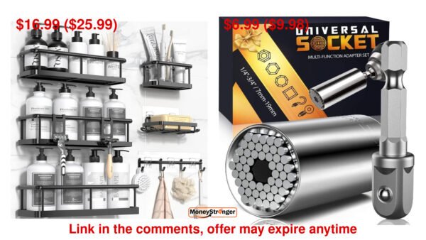 in Amazon YASONIC Shower Caddy, 100% Rustproof Shower Shelves $16.99 ($25.99), Stocking Stuffers for Men Super Universal Socket Tools $6.99($9.98) #ad